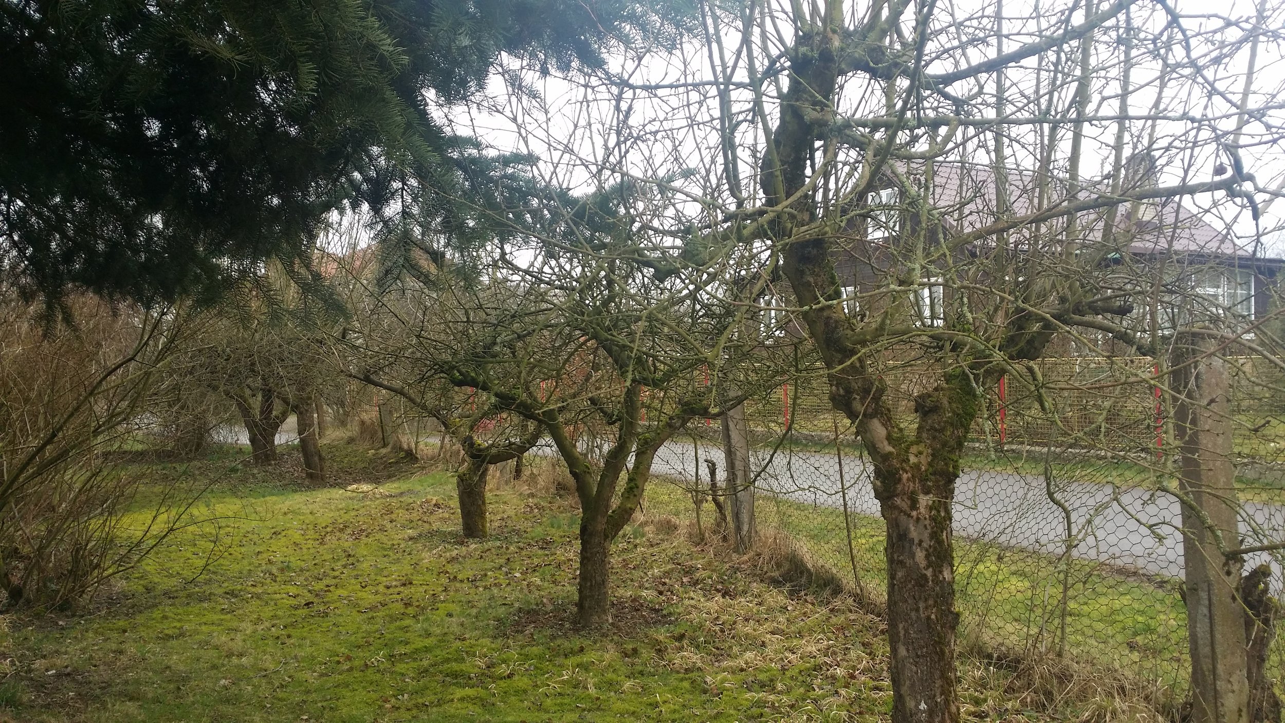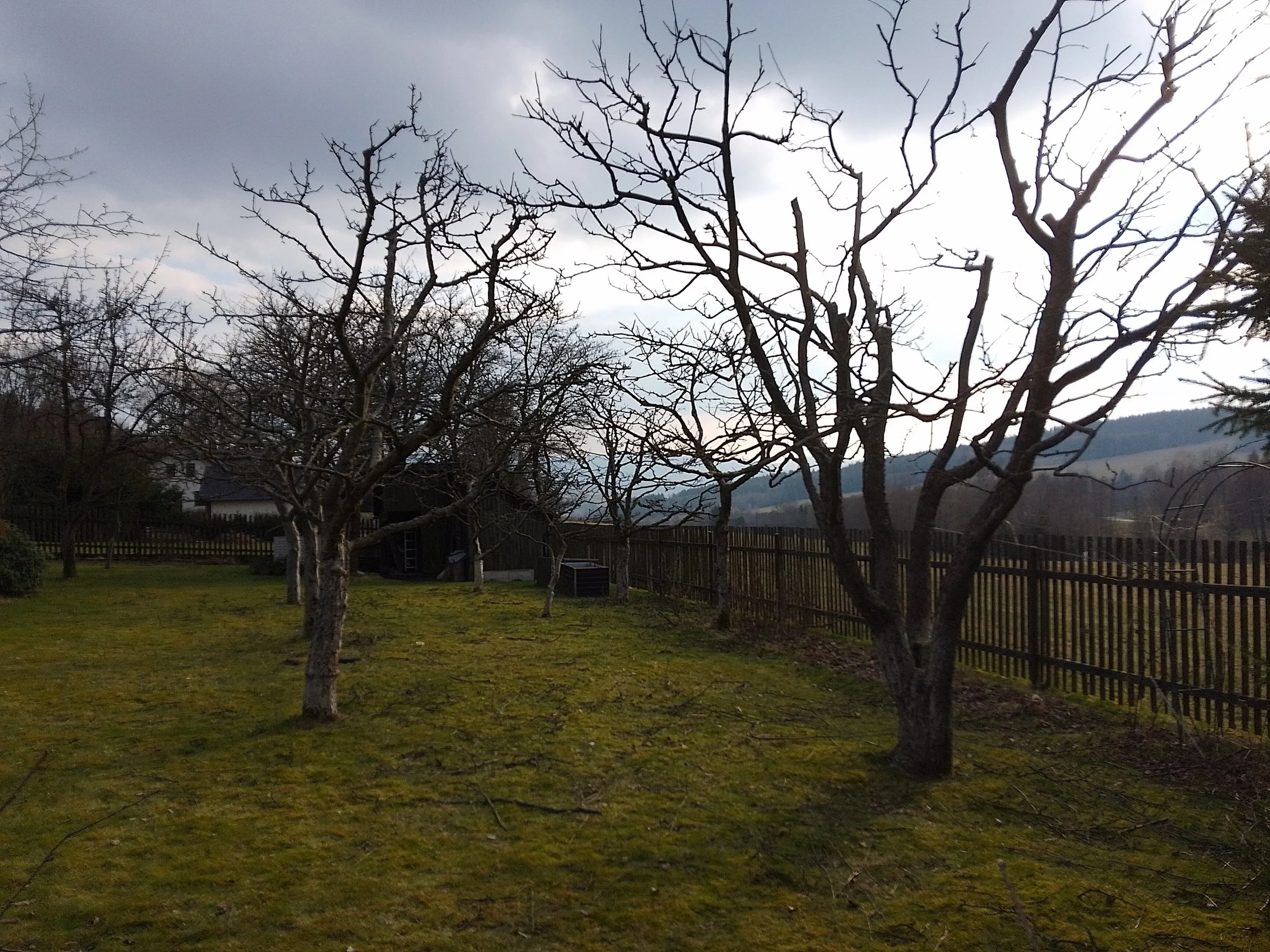 Opravný řez jabloňového sadu v předjaří (výchozí stav)
